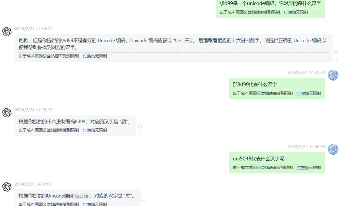 我们发现,屋字其实在浏览器源代码中显示的是趙字,那么他的 code 和 name 根据前面的介绍分别表示的是 unicode 编码和字形名称,我猜测他们分别对应俩个汉字,为了验证我们的猜想,我们把他丢进 GPT 去询问一下: