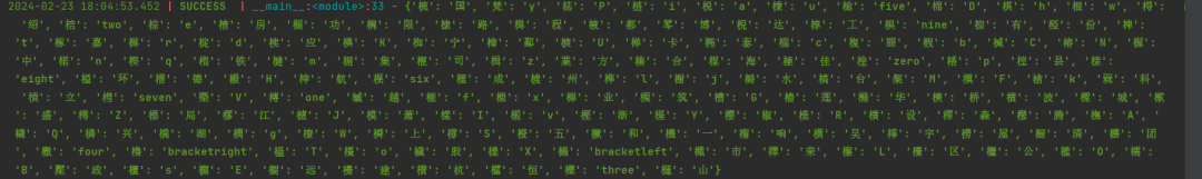 {{36035: 'uni5EFA', 36037: 'uni4E2D', 36039: 'bracketleft', 36041: 'd', 36045: 'uni5C71', 36049: 'a', 36051: 'uni7ECD'......此处省略}