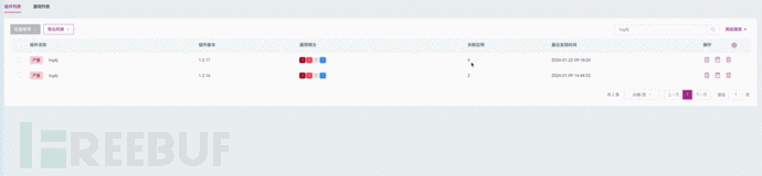 静态 SCA 工具通常会依赖包管理器配置文件或二进制特征指纹识别组件,若组件被声明在依赖中,但代码中并未引用,就会存在误报。而通过运行时 SCA,便可以准确拿到在应用运行时阶段使用了哪些第三方组件依赖。如下图所示,为检索所有在运行时环境中依赖 Log4j2.x 组件的所有应用。