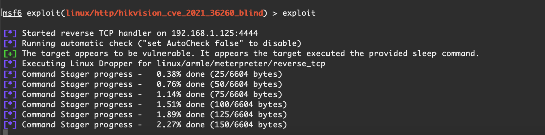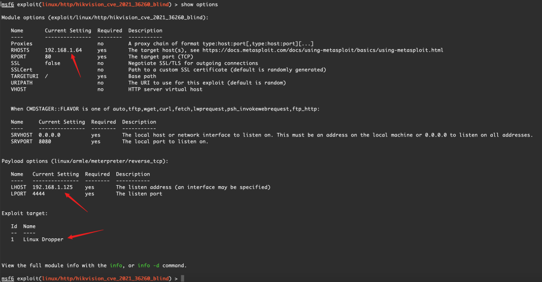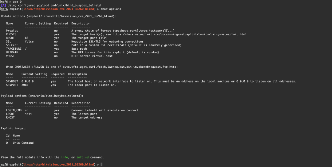 其实 Metasploit 中自带了 CVE-2021-36260 的 Payload,攻击起来异常便利