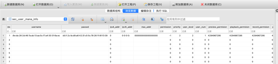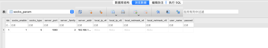 并没有找到与 socks 相关的,所以这里要么是通用功能,只不过在这个小摄像头里没有,要么就是系统自带的代理功能,我们尝试修改数据库,看看能不能有意外惊喜