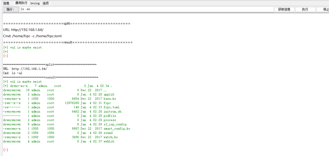 经过测试,命令执行环境对 ; 和 | 支持不是很好,而且没有 grep ,只能 ls -al 取结果我们这边分析了