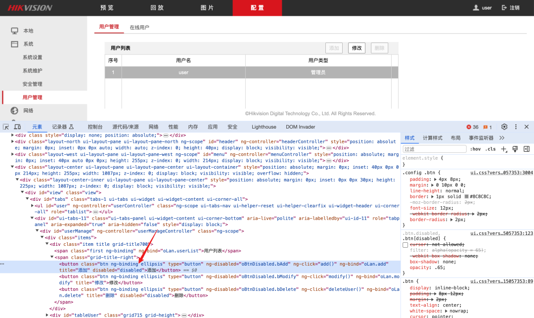 可以看到,已经是管理员权限了,但是添加、删除用户还不能用,是灰色的,猜测可能是前端问题