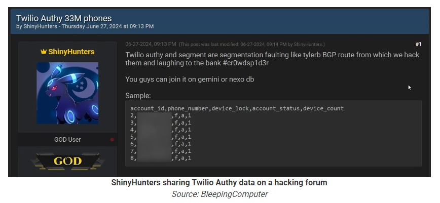 BleepingComputer notes that a threat actor named ShinyHunters leaked a CSV text file containing what they claim are 33 million phone numbers registered with the Authy service.