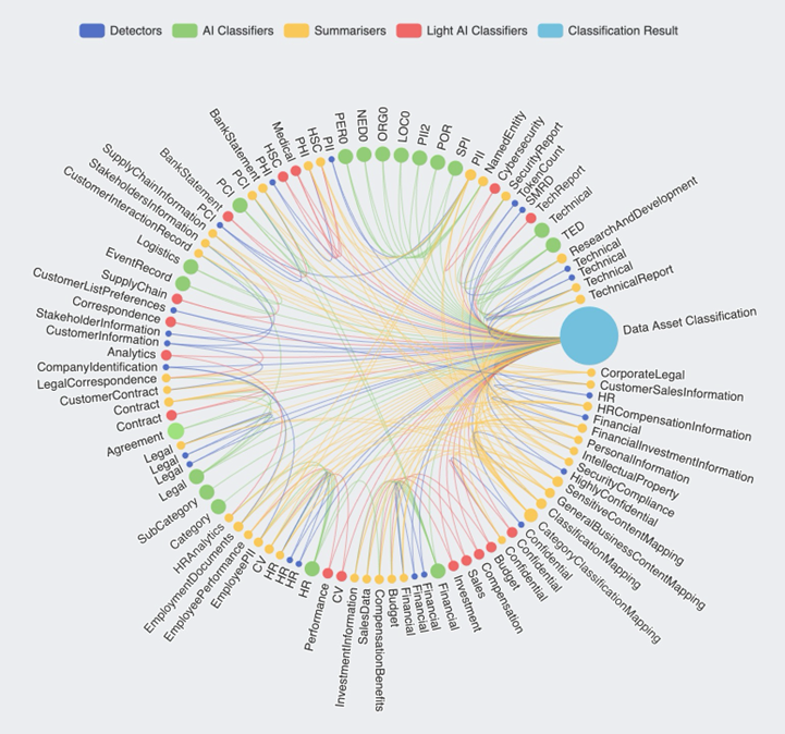 At Forcepoint we also claim that Forcepoint DSPM is "AI powered." It is truly “AI powered” and the substance behind this statement lies in the technology known as the AI Mesh. This innovative approach revolutionizes data classification through a networked AI architecture, leveraging a GenAI Small Language Model (SLM) and a network of advanced data and AI components for intelligent, rapid classification of vast amounts of files—a necessity for a robust DSPM solution.