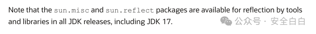 后面看Oracle的官方文档发现,官方预留了sun.misc和sun.reflect两个包可以进行反射调用
