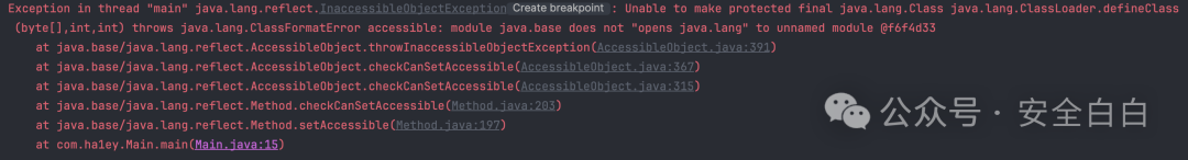 后面看了@Aiwin师傅在https://xz.aliyun.com/t/14048分享通过修改当前类的module为`java.base`保持和`java.lang.ClassLoader`同module下就可以打破模块化的限制,从而可以加载字节码文件。