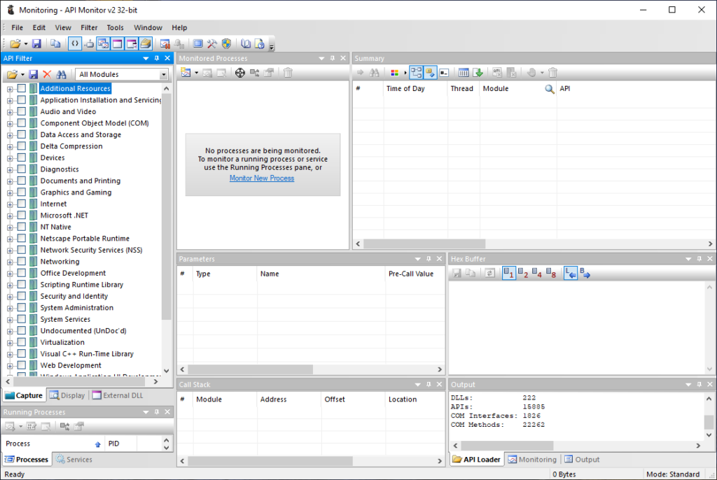 When analyzing standard ATM software, malicious software, or creating signatures to detect it, it may be useful to track which functions were called from msxfs.dll, in what order, with what arguments, etc. Historically, for such analysis in the context of WinAPI, I've used Rohitab API Monitor: a convenient but somewhat outdated tool.