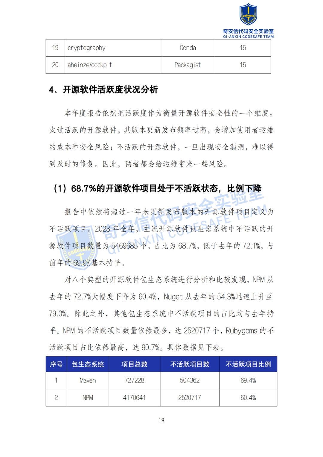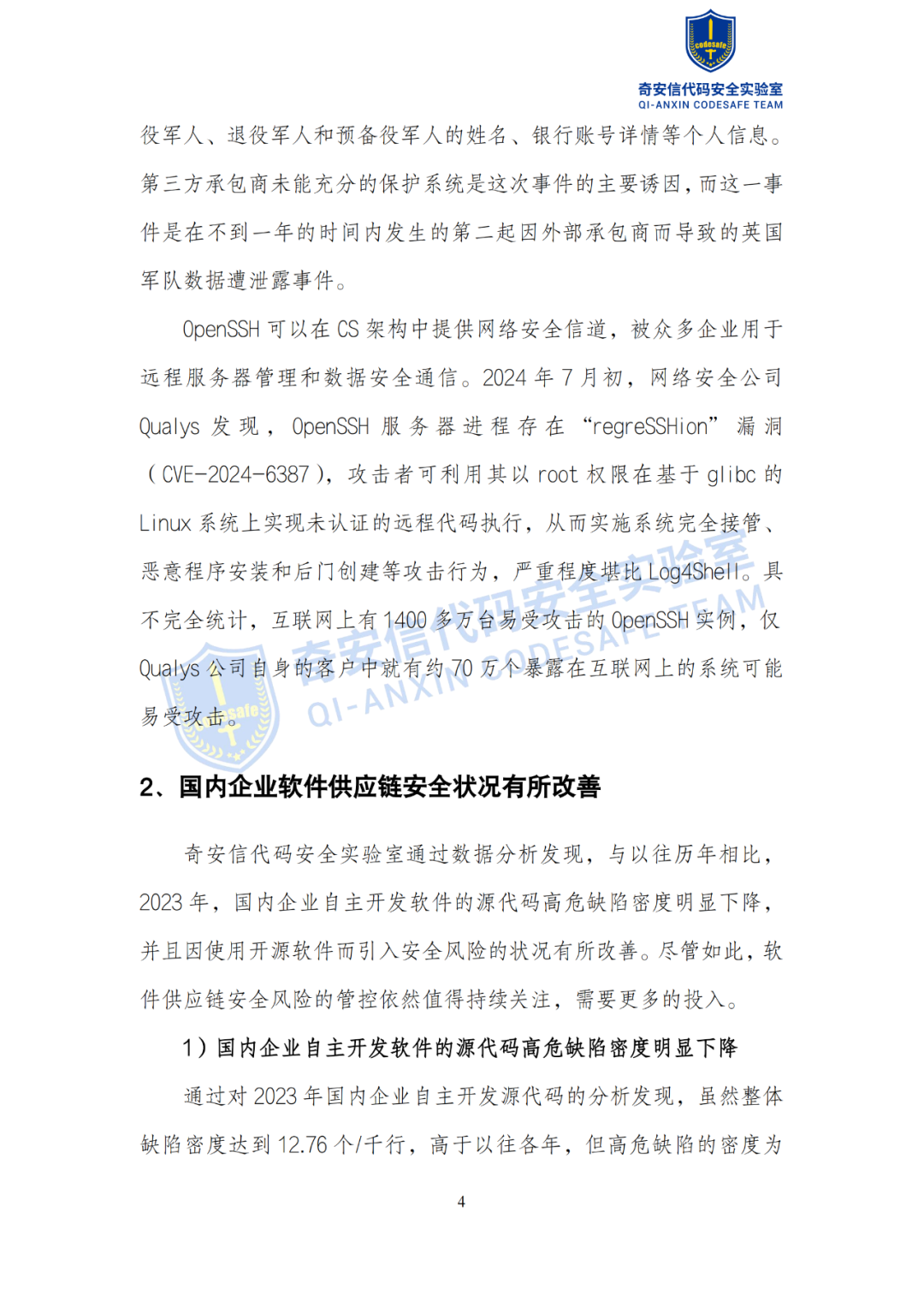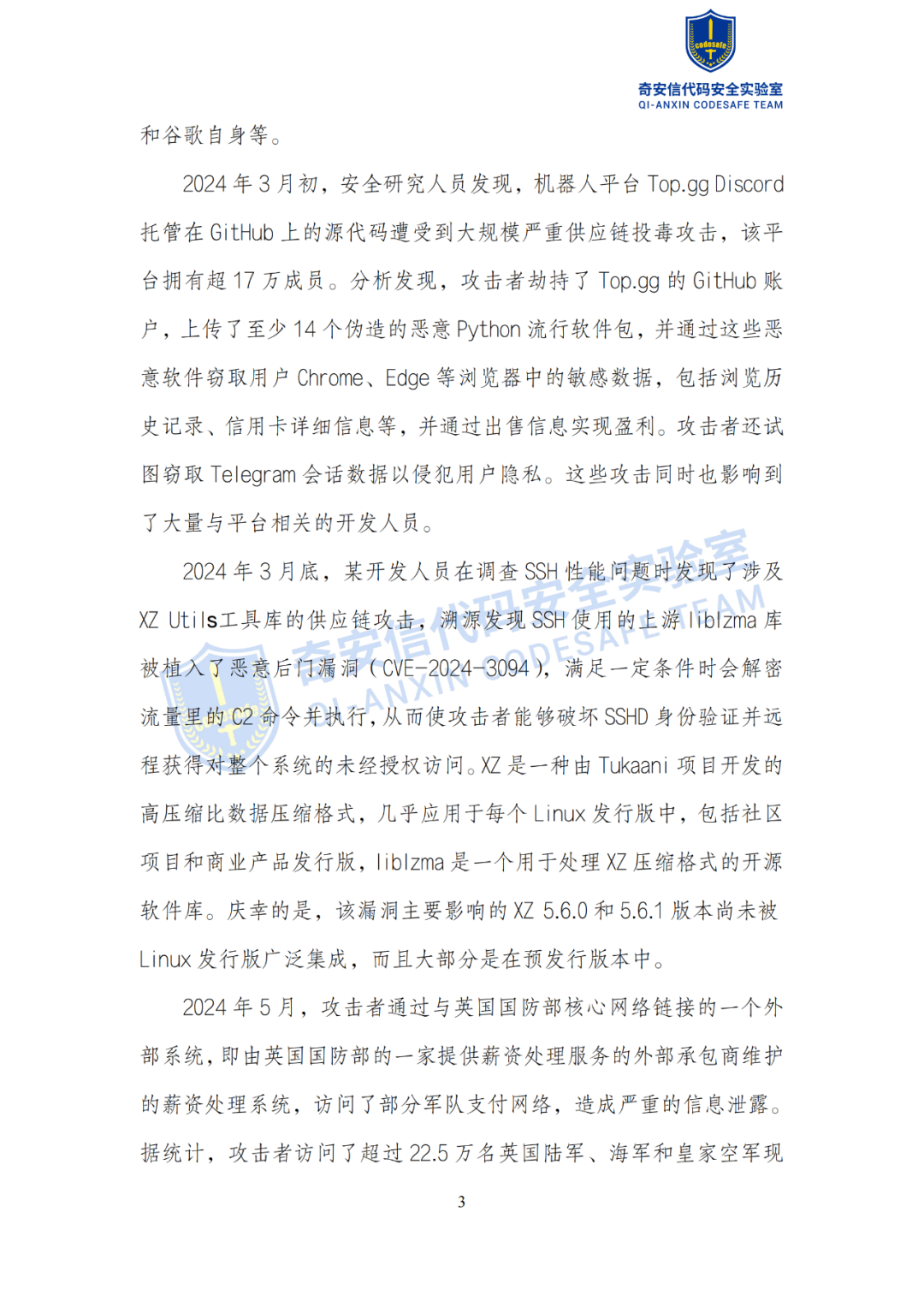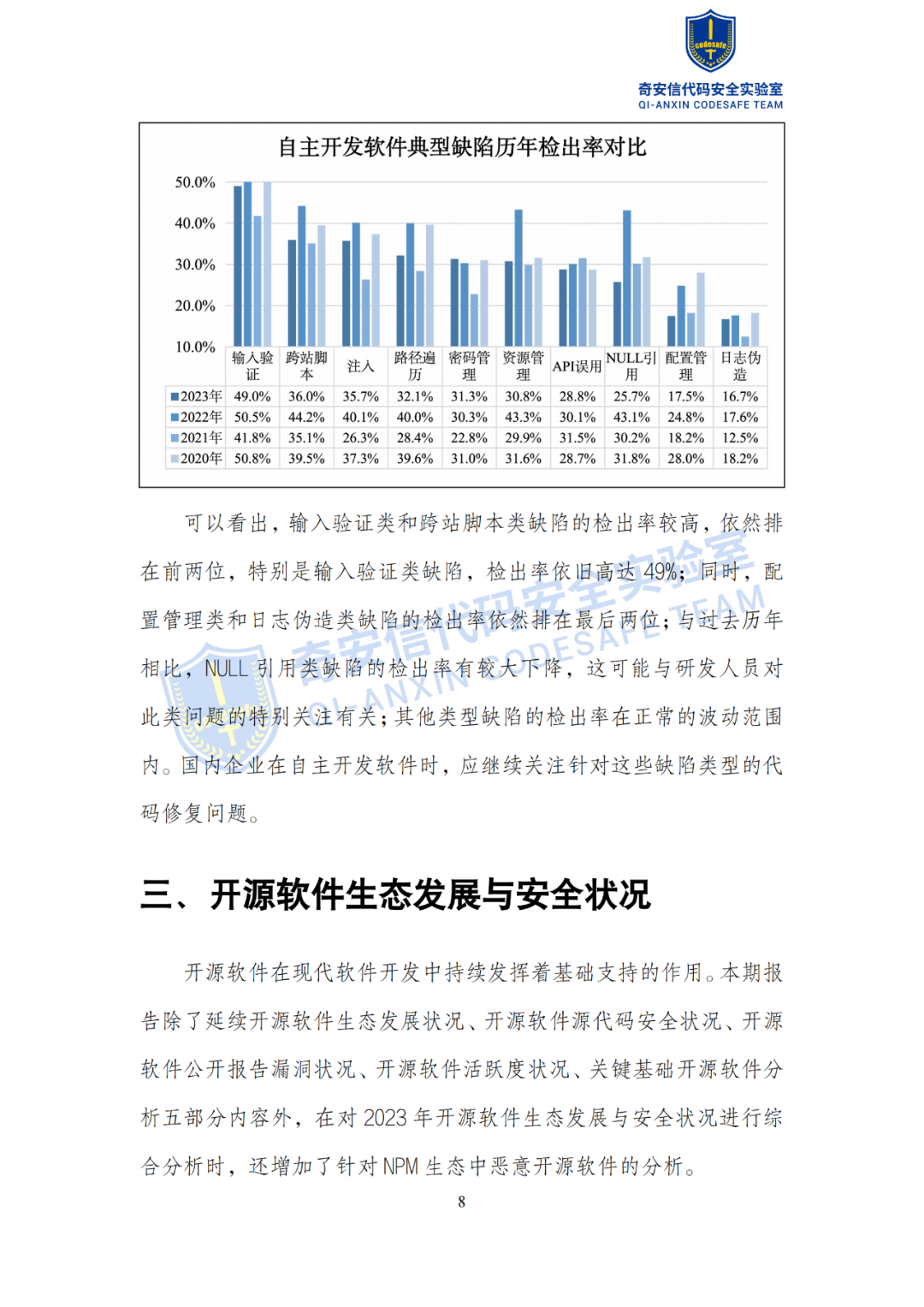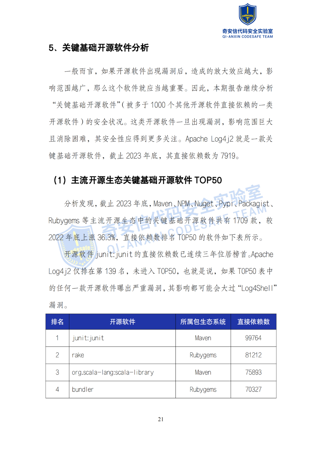 作为本系列年度分析报告的第四期,本报告深入分析了过去一年来代码安全问题对软件供应链安全性的潜在威胁,总结了趋势和变化。与往年报告相比,本期报告在开源软件生态发展与安全部分新增了对NPM生态中恶意开源软件分析的内容;并通过多个实例再次验证了“外来”组件“老漏洞”发挥“0day漏洞”攻击作用的状况。感兴趣的读者可重点关注。
