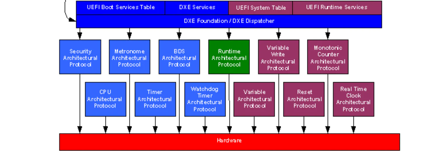 In the early DXE phase, drivers typically perform essential CPU/PCH/board initialization and also produce DXE Architectural Protocols (APs), which help isolate the DXE phase from the platform-specific hardware. APs encapsulate the details specific to the platform, allowing the late DXE phase to operate independently of the hardware specifics.