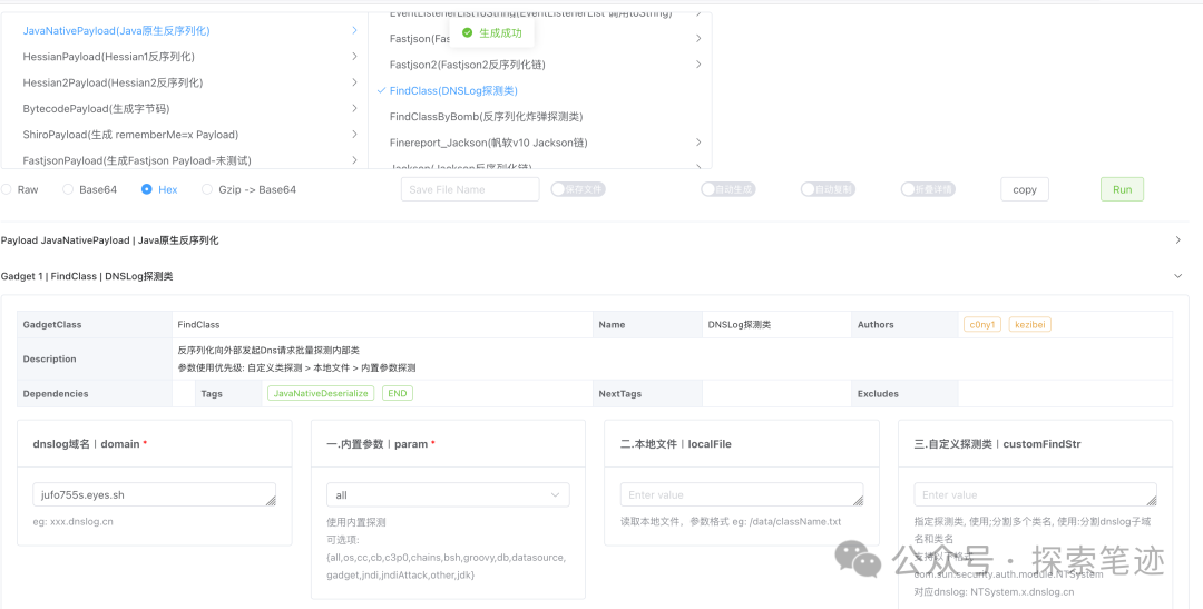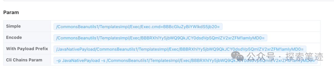 还有一些 ShiroPayload、HessianPayload、AMF Payload、宝蓝德Payload 等等生成,这里不举例了,关注公众号可以获取URL自行体验。