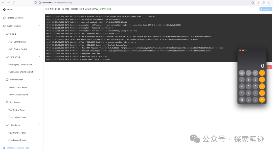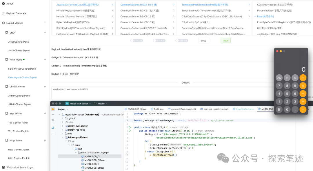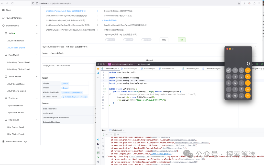 有了生成模块作为基座,兼容其他利用就很简单了,只需要小小的「对接」即可:把生成出来的 Payload 装填到其他工具中,例如 JNDIExploit: