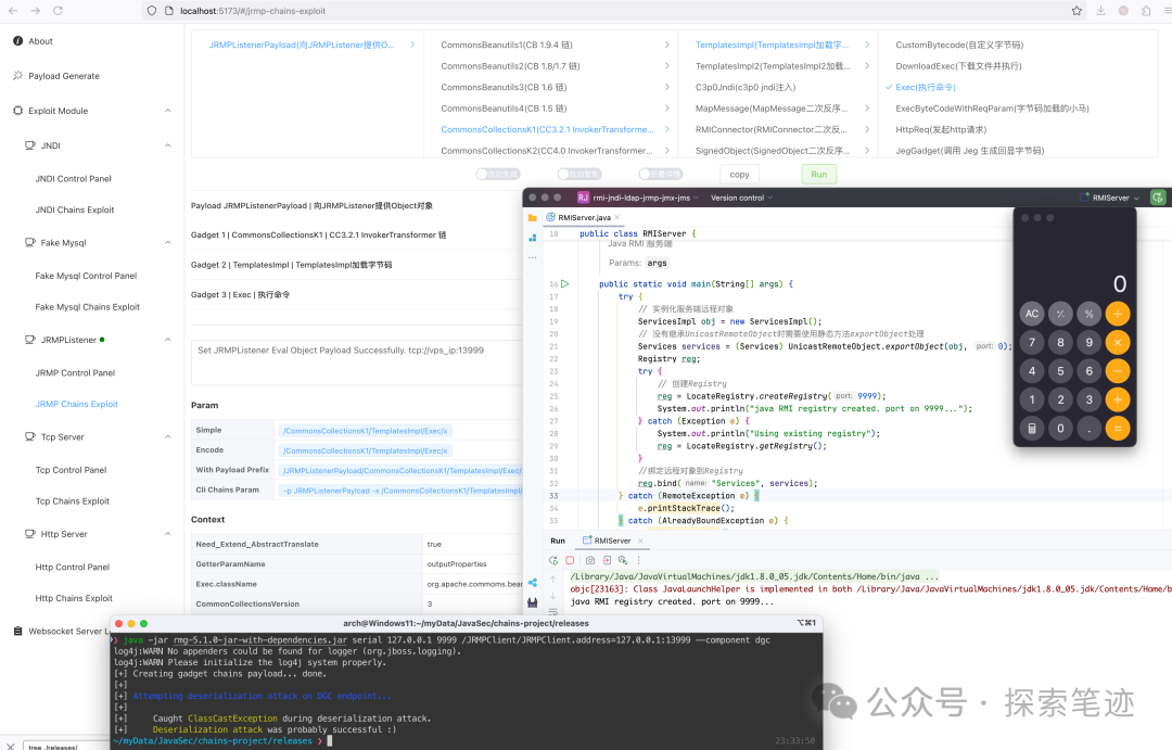 https://github.com/qtc-de/remote-method-guesser 是一个优秀的RMI漏洞利用工具,也是简单魔改一下,将里面的 ysoserial 替换为 cli-chains(命令行版),提供更多的 Paylaoad 支持(站在巨人的肩膀上