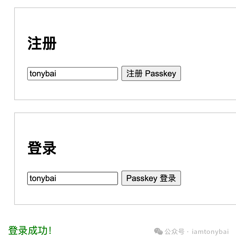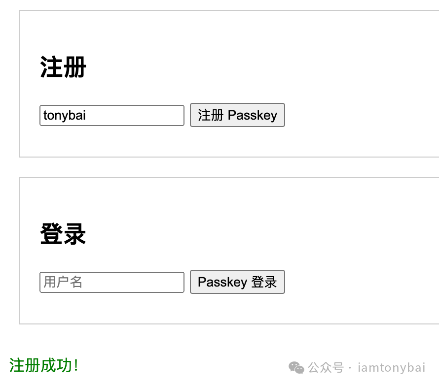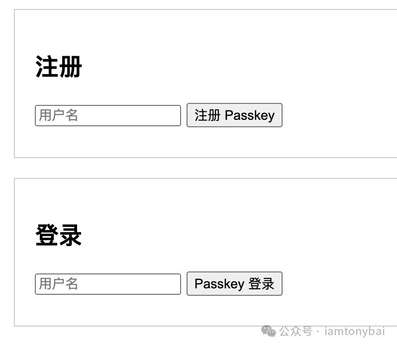了解了原理之后,我们再来看一个简单的示例,直观地看看如何实现基于passkey的身份认证。
