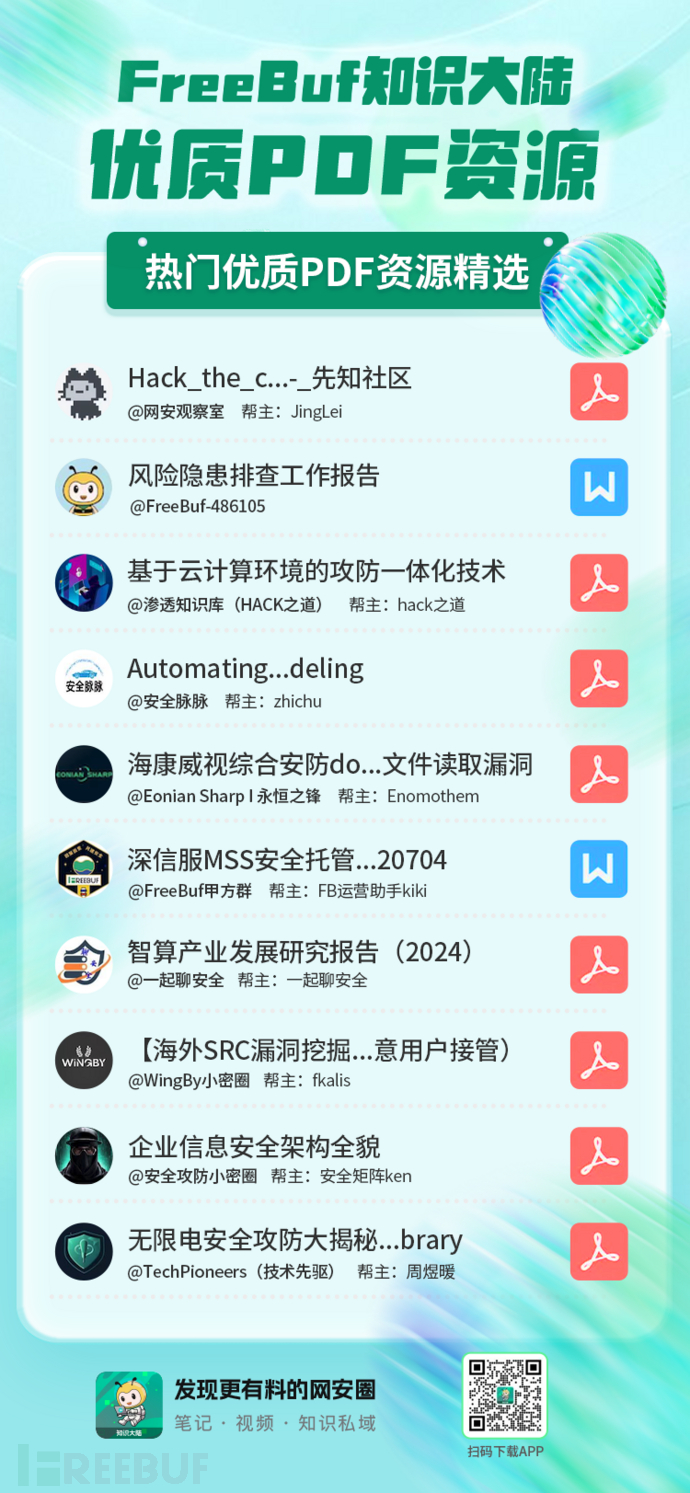 各位读者周末好,以下是本周「FreeBuf知识大陆一周优质资源推荐」,我们精选了本周知识大陆公开发布的10条优质资源,让我们一起看看吧。