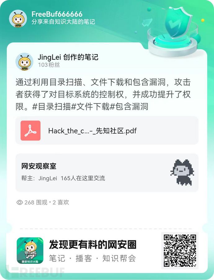 本文档介绍通过利用目录扫描、文件下载和包含漏洞,攻击者获得了对目标系统的控制权,并成功提升了权限。