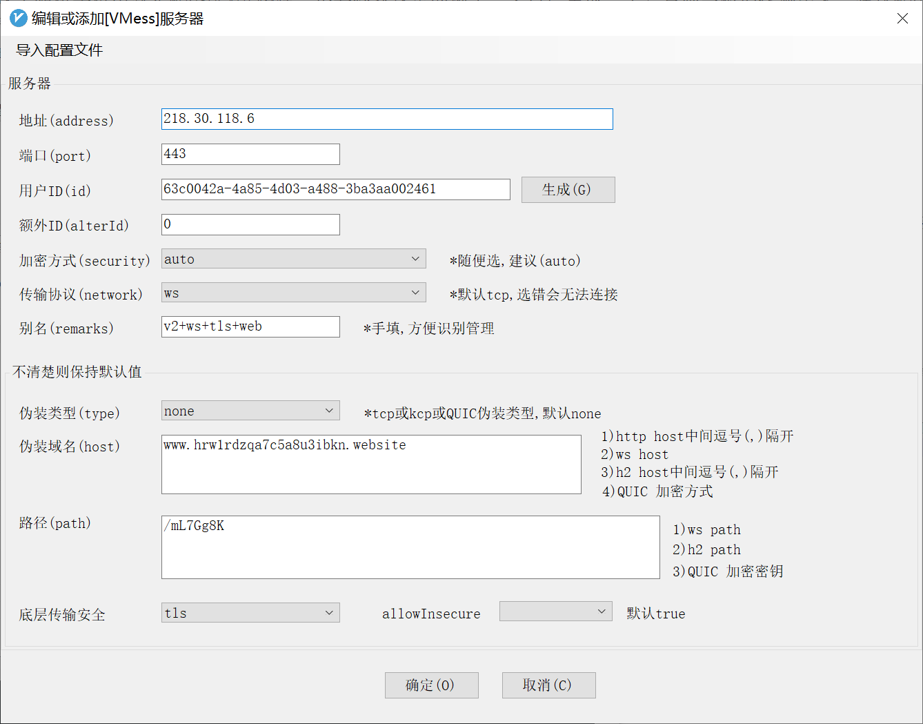 - 伪装域名:绑定到服务器的域名,我的是www.hrw1rdzqa7c5a8u3ibkn.website