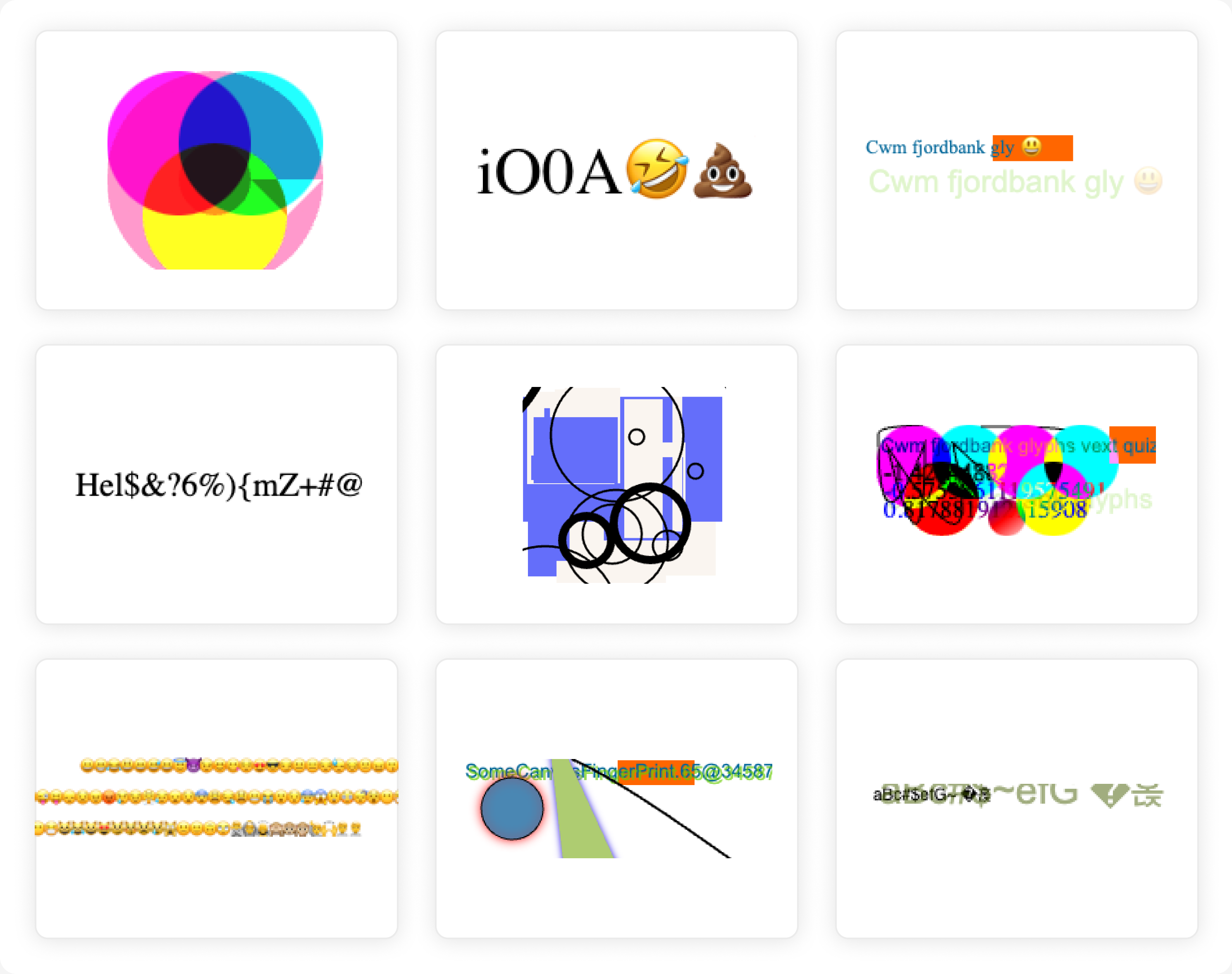 These are canvas fingerprints, a technique used by the vast majority of websites to fingerprint devices and distinguish humans from bots. What you might not realize is that this is achieved by rendering colorful patterns and emojis, showcasing a surprising layer of creativity from the vendors. In this article, we’ll dive into some unexpected visual artifacts caught in the wild and explore how they contribute to tracking your browser in a truly unique way.