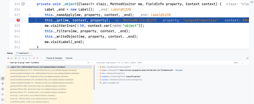 该类中存在getOutputProperties方法,符合getter类型,所以最后能调用getter的利用链最后基本都会通过TemplatesImpl实现代码执行。
