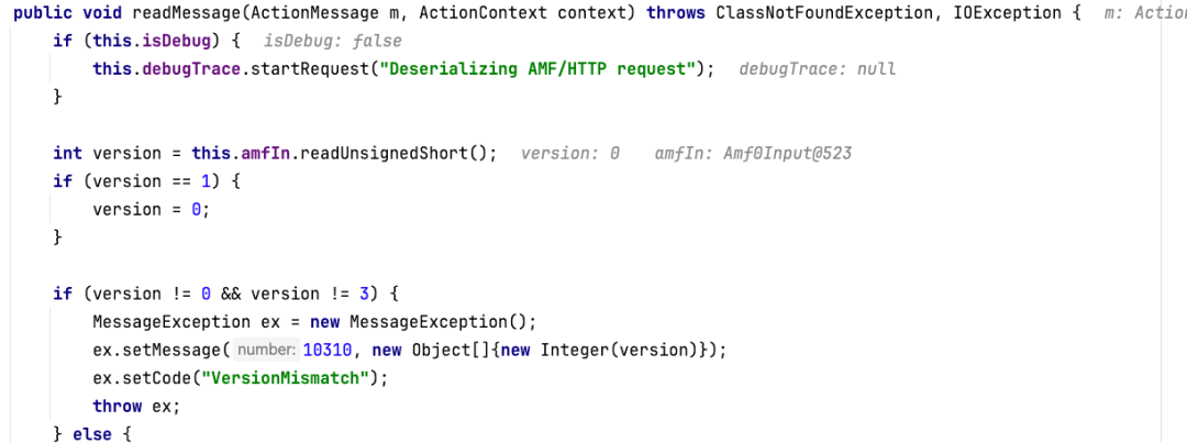 private void oldDispatch(Remote var1, RemoteCall var2, int var3) throws Exception { ObjectInput var6 = var2.getInputStream(); try { Class var7 = Class.forName("sun.rmi.transport.DGCImpl_Skel"); if (var7.isAssignableFrom(this.skel.getClass())) { ((MarshalInputStream)var6).useCodebaseOnly(); } } catch (ClassNotFoundException var9) { } long var4; try { var4 = var6.readLong(); } catch (Exception var8) { throw new UnmarshalException("error unmarshalling call header", var8); } this.logCall(var1, this.skel.getOperations()[var3]); this.unmarshalCustomCallData(var6); this.skel.dispatch(var1, var2, var3, var4);}