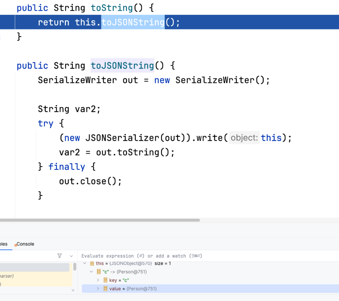 在AbstractCollection#toString方法中,会遍历集合然后调用了StringBuilder#append方法,所以这时候会触发集合中元素的toString方法。这时候我们将恶意对象放到Vector中,就会触发到恶意对象的toString方法了。
