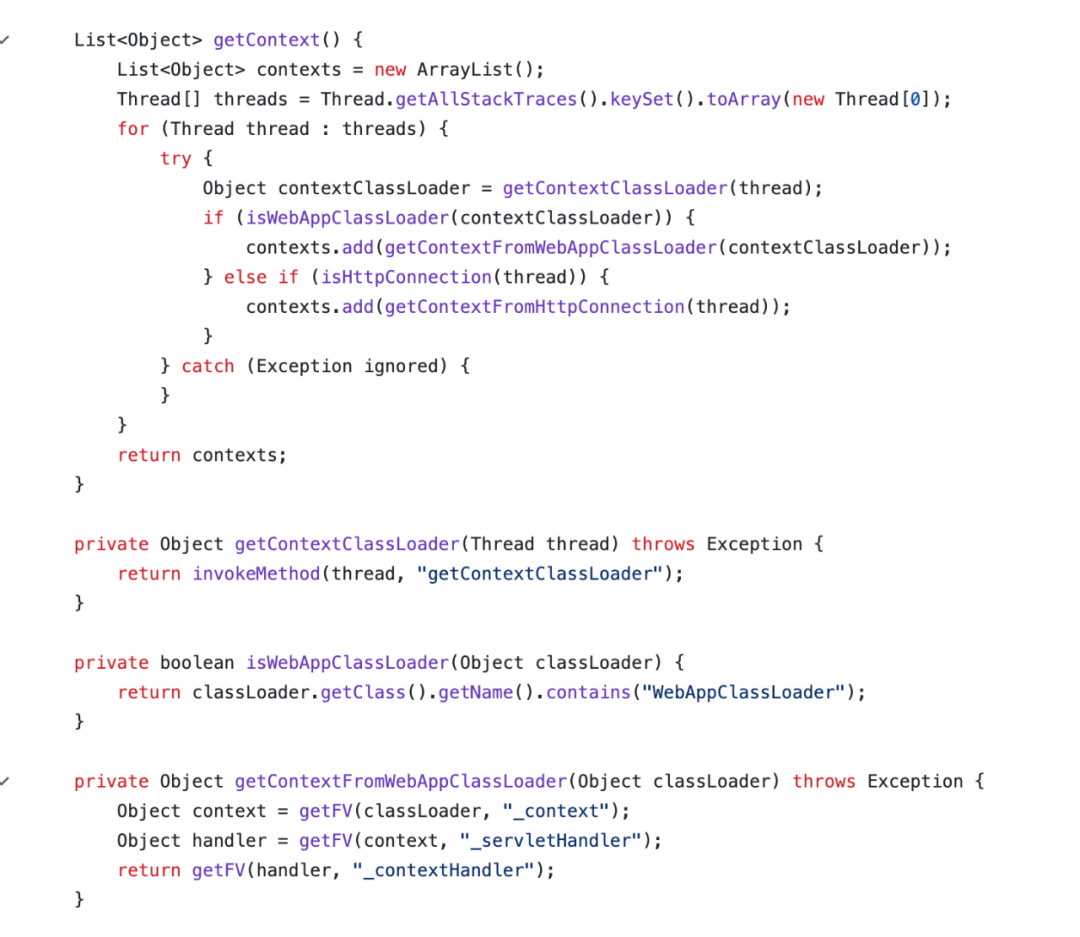 安全检测会联合多个插桩点进行综合性判断,当程序出现命令执行、内存马加载等行为时,会关联程序执行的上下文信息来看这些操作是不是反序列化漏洞引起的,从而做到未知反序列化漏洞的防御。随着攻防对抗的加剧,攻击者也会引入一些新的手法来对抗RASP的检测,比较有代表性的绕过方式就是线程注入。利用反序列化漏洞的代码执行能力,创建新的线程使得当前的检测丢失一些上下文信息,最终导致绕过。