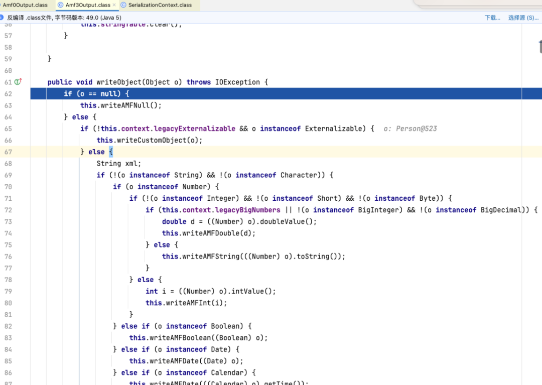 private Object readObject0(Class<?> type, boolean unshared) throws IOException {boolean oldMode = bin.getBlockDataMode();if (oldMode) {int remain = bin.currentBlockRemaining();if (remain > 0) {throw new OptionalDataException(remain);} else if (defaultDataEnd) {/** Fix for 4360508: stream is currently at the end of a field* value block written via default serialization; since there* is no terminating TC_ENDBLOCKDATA tag, simulate* end-of-custom-data behavior explicitly.*/throw new OptionalDataException(true);}bin.setBlockDataMode(false);}byte tc;while ((tc = bin.peekByte()) == TC_RESET) {bin.readByte();handleReset();}..........case TC_OBJECT:if (type == String.class) {throw new ClassCastException("Cannot cast an object to java.lang.String");}return checkResolve(readOrdinaryObject(unshared));