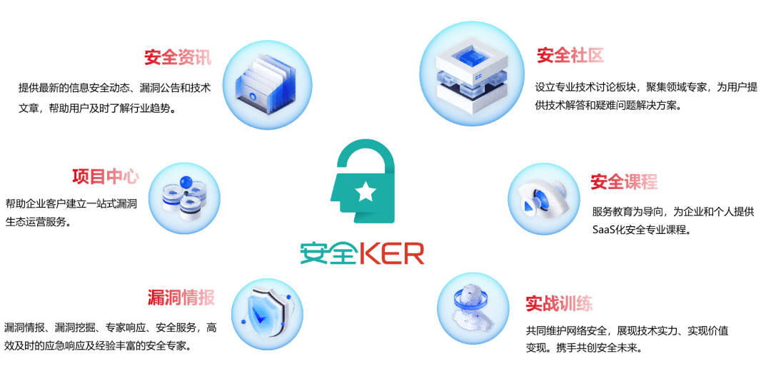 安全KER致力于搭建国内安全人才学习、工具、淘金、资讯一体化开放平台,推动数字安全社区文化的普及推广与人才生态的链接融合。目前,安全KER已整合全国数千位白帽资源,联合南京、北京、广州、深圳、长沙、上海、郑州等十余座城市,与ISC、XCon、看雪SDC、Hacking Group等数个中大型品牌达成合作。