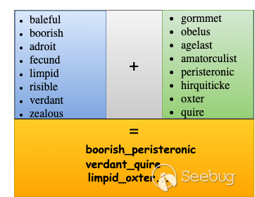 此图包含Cetus使用的名称示例,包括boorish_peristeronic,verdant_quire和limpid_oxter。