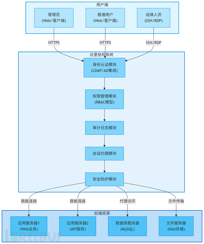 云堡垒机作为核心安全网关,构建了一个完整的安全架构: