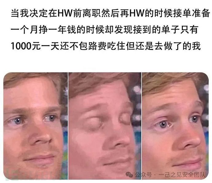言归正传。我目前的现状可以说离我曾经的目标越来越远了,几乎天天没有准时下班回家的,日常各种处理事情、写方案、给领导回答问题(然后领导不断反驳以及不相信你),客户刁难、公司刁难,安服本来就是地位很低的一个岗位,现在还要承担两边大头的沟通桥梁,甚至还得警惕点日常背锅事件,说不定哪天就给我抓进去了。还有多少人对做技术的想法是从技术到管理的?或许吧,也有点不切实际,哪有那么多管理岗给人做,很多时候就是两个方向上的事情,也有人想转去做销售的,真有能力的人寥寥无几。反正我已经放弃这个不切实际的想法了,敲下这篇文是想和师傅们共勉,再坚持坚持,可以放弃,但不能饿死在半路上,馊饭也是饭,将就吃着。上一篇安服仔的自述大概也是一年前发出来的,彼时公众号刚刚成立不久,刚好吸到了第一批老粉,仅以此文感谢陪伴了up一年的兄弟们,希望xdm未来也一切安好。乏了,明天还得加班呢。