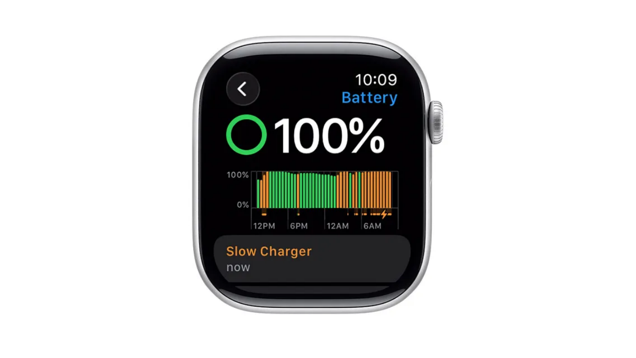 在 watchOS 26 中,如果您的 Apple Watch 检测到充电体验有待改进,则您会在设置、电池中看到充电器慢的消息,这并不意味着您的 Apple Watch 或充电器有问题,只是意味着您的手表可以使用更高功率的充电器进行更快地充电。