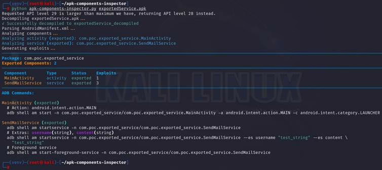 To make this discovery process faster and more efficient, a new tool — APK Components Inspector. It automates the detection of these exported components. On top of that I have built a script that would even generates ready-to-use ADB commands for testing and automatically run them on Android to automate the full process.