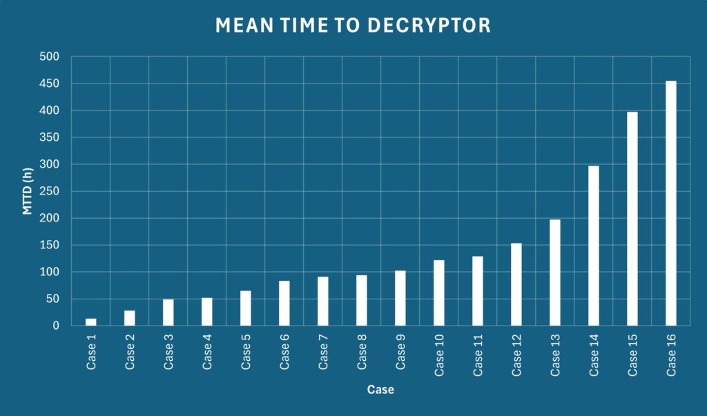 The time from initial victim contact to receipt of a decryption tool varied widely. Of the 17 who paid, the fastest got theirs in just 13 hours, while the slowest took 455 hours (almost 19 days).