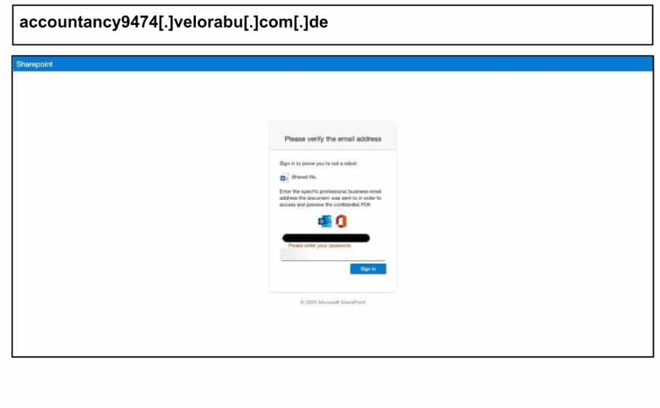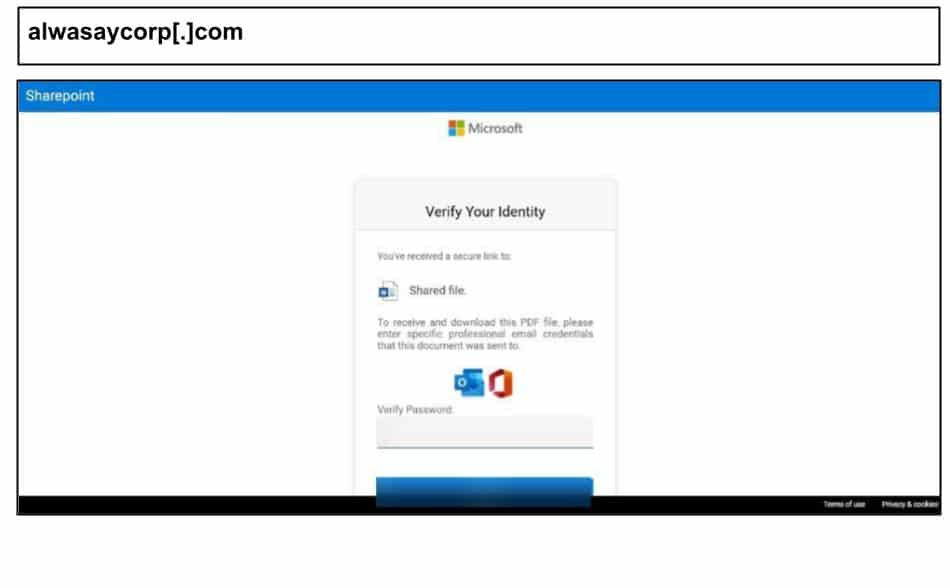 This phishing page uses a SharePoint/O365 doc-share lure: