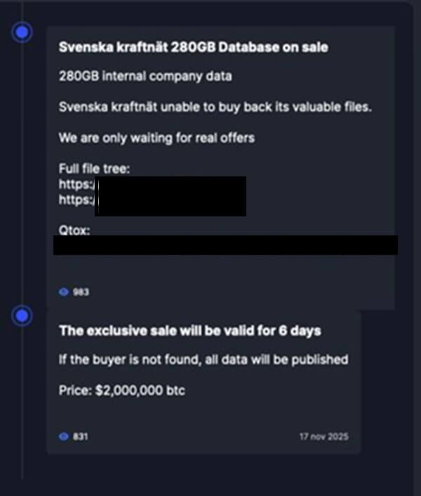 Sono stati esfiltrati 280 GB di dati e, a quanto pare, il gestore svedese non ha accettato di pagare il riscatto, tant’è che Everest ha messo in vendita i dati per la cifra di 2 milioni di dollari (1,74 milioni di euro, al cambio attuale).