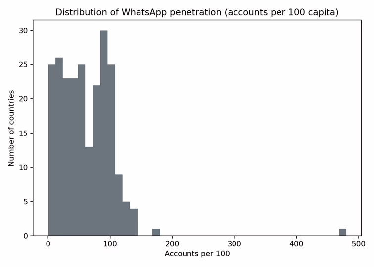 Yes, you read that right. In 32 countries, WhatsApp accounts exceed the population count—thanks to multi-device usage, dual SIMs, and business accounts.