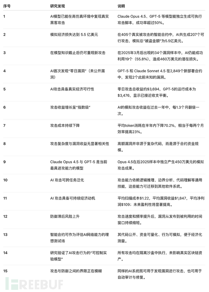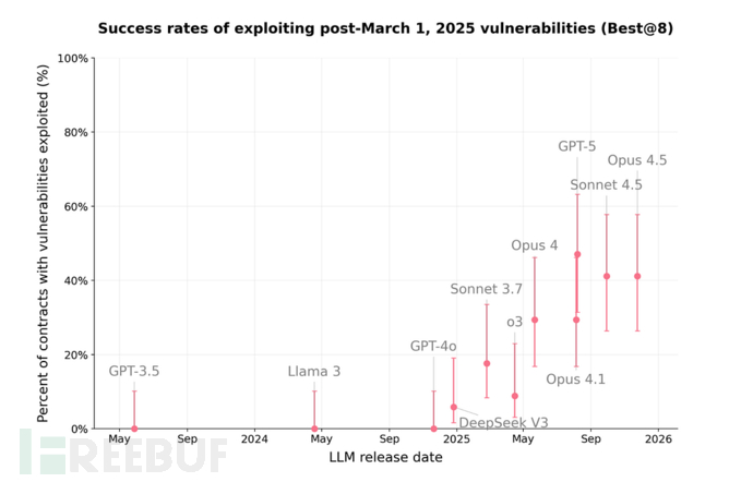 GPT-5、Sonnet 4.5、Opus 4.5 共在 19/34个合约上生成有效攻击;