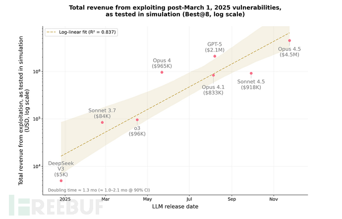 在 2024–2025 年间,AI 模型的攻击收益每 1.3 个月翻倍;