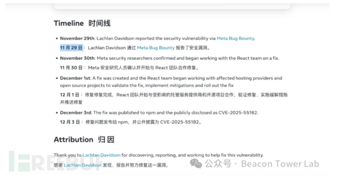 官方公告中提到,该漏洞由Lachlan Davidson 在Lachlan Davidson11 月 29 日 进行报告: