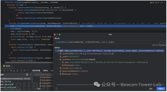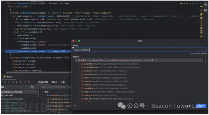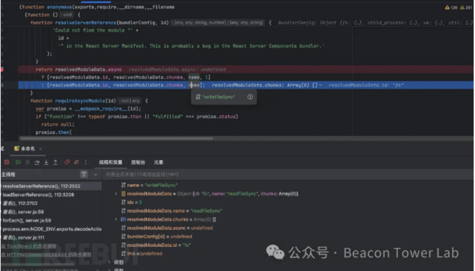 随后调用preloadModule,在moduleExports中,保存该模块的所有函数,可以通过resolveServerReference 中处理后得到的函数名来获取进行返回,而函数名我们可以通过fs#writeFileSync来指定绕过manifest 中的限制来调用其他函数。
