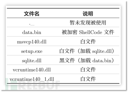 从广告位下载恶意程序到解压执行:从广告位可以下载到 239.135.126.83.zip 文件,解压后为 File_Open v.5.2.7z,其解压包中包含以下文件。其中用户会被误导点击白文件 setup.exe 进行安装,此时会加载黑文件 sqlite.dll,该 DLL 会读取 data.bin 文件并解密并执行其中 ShellCode。