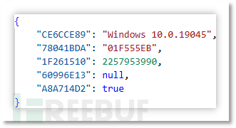 POST 请求时会发送以下内容的经过加密和 Base64 编码后的数据,其中 CE6CCE89 字段值为 Windows 版本、78041BDA 字段值为系统盘序列号哈希值、1F261510 字段值为固定编码,猜测为病毒版本相关、A8A714D2 字段值为是否为管理员权限。