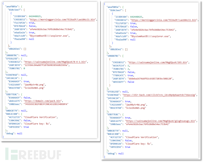 经两次不同请求获取到两份云控配置,从中可发现部分字段值并非在每次云控配置中均存在。
