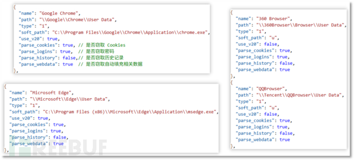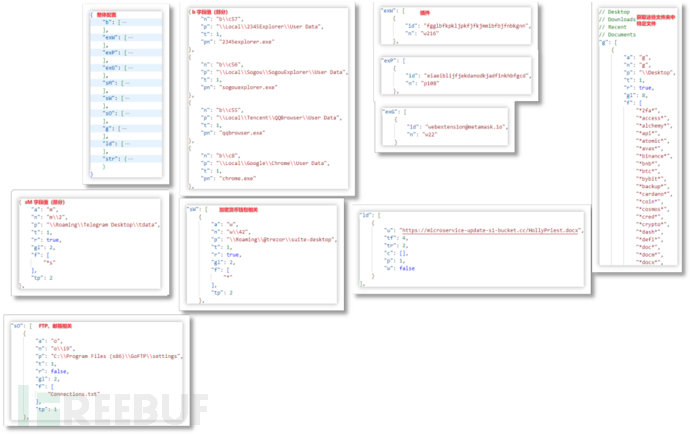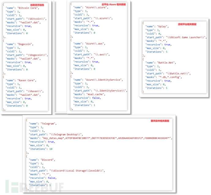 窃密部分以云端下发的窃密配置的结构进行分类。