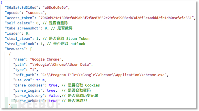 服务器下发的窃密配置(小部分)
