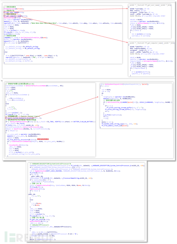 获取系统信息:用户唯一标识(卷序列号生成)、系统版本号、用户名、计算机名、当前时间、时区信息、用户区域、键盘布局、电池信息、进程路径、CPU 信息、进程列表和安装软件列表等系统信息。