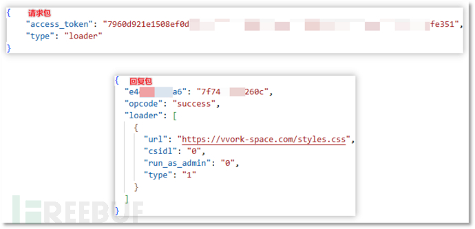 运行时该病毒会发送数据包请求 loader 配置,其配置中的 url 为将要静默执行的程序或脚本的下载链接。