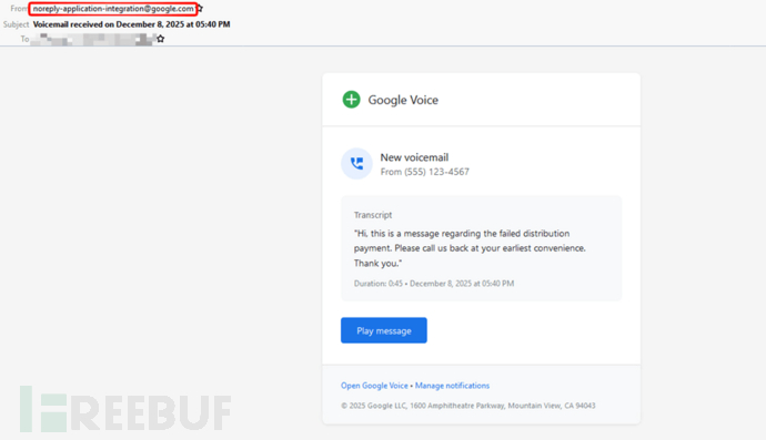 由于邮件源自真实谷歌域名,传统安全过滤器难以识别。研究人员发现,这些邮件通常伪装成"新语音邮件"或"Q4文件查看"等常规办公通知,极易获得收件人信任。