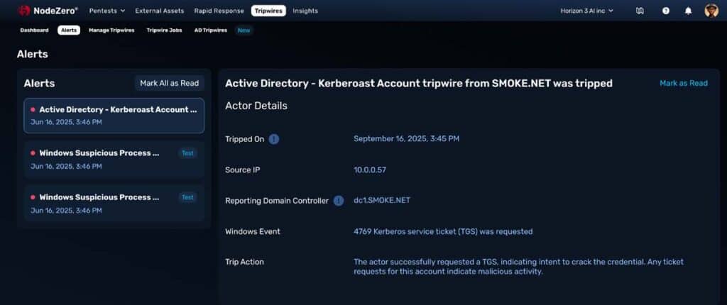 NodeZero Tripwires extend these offensive insights into defensive detection. When NodeZero